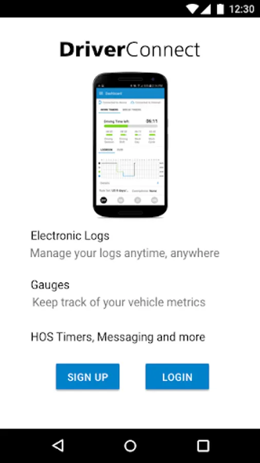 The app helps drivers to create pre-trip and post-trip DVIRs. The app allows users to store images in DVIRs and also to store fuel receipts useful for filing IFTA reports. The app stores location information with duty status changes and transmits the position information to the DriverConnect portal to track and trace a vehicle. The location information is also provided in reports created to aid in IFTA filings.