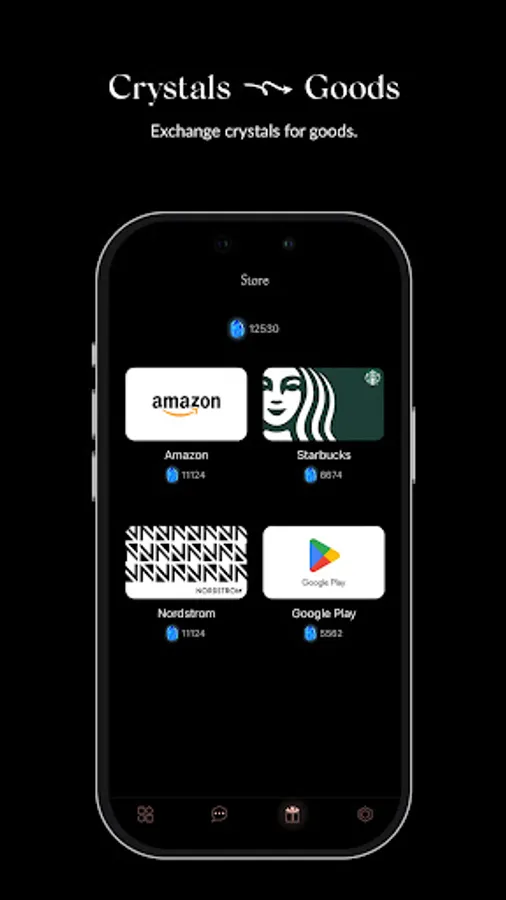 • Collect crystals and exchange for goods.