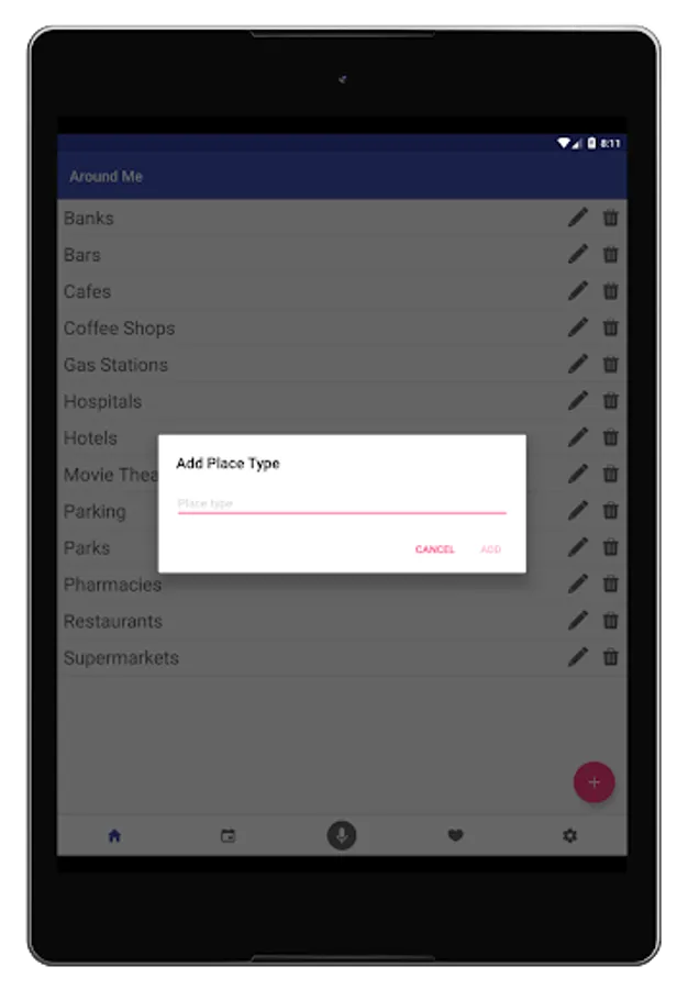 Have a certain type of place you're always looking for? Around Me makes it so you only have to type it out once ever by maintaining a list of the place types you care about. You can add, edit, and remove whatever place types you want at any given time. Customize Around Me to best suit your needs!