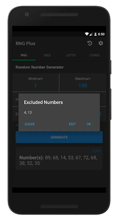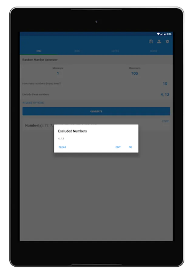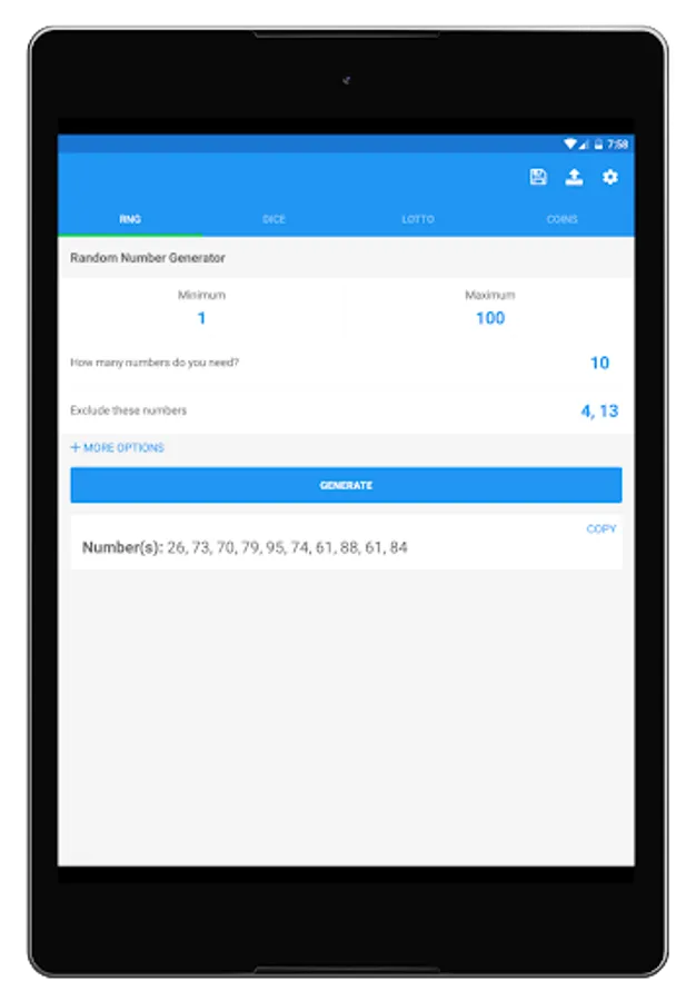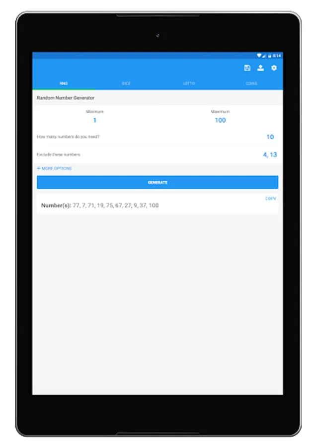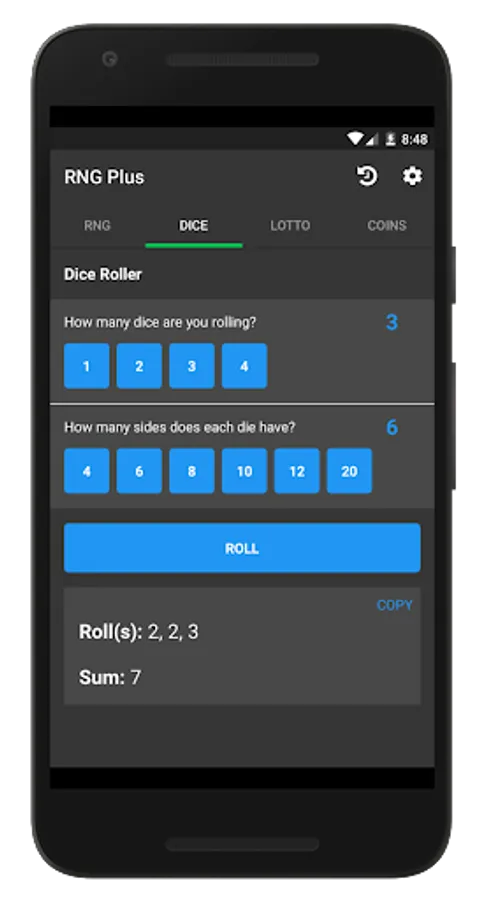 I don't know about you, but rolling dice in games is annoying sometimes. They're loud and they end up all over the place. This is why Random Number Generator Plus also has a dice-rolling mode where you can roll as many dice you want with whatever amount of sides you want. Random Number Generator Plus also gives you the sum of the rolled dice and allows you to copy the results to your clipboard. To save you time, the app provides "quick options" for common amounts of dice sides and dice amounts so you can quickly roll dice for popular games like Dungeons & Dragons.