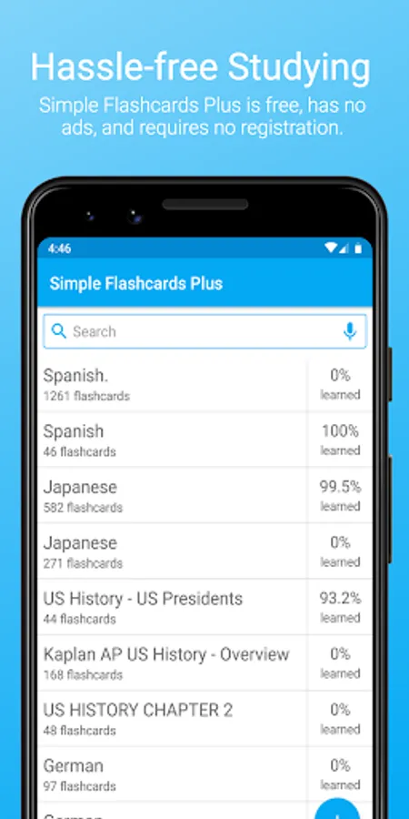 This tiny, powerful, no-nonsense flashcards app lets you study with flashcard sets however you want without any hassle. We don't take your money, data, or battery, which is why the app is free and one of the simplest flashcard apps in all of Google Play.