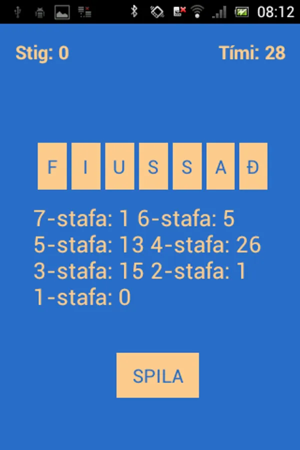 A small icelandic wordgame where you try and find as many words within a jumble of 7 letters within 30 seconds, where there is at minimum of one 7 letter word.