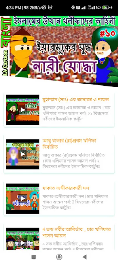 Islamic cartoon video bangla app android is a very interesting app. This app can be used to watch videos about Islam, such as the lives of the Prophet Muhammad's wife and other Islamic prophets.