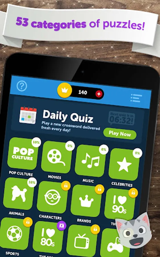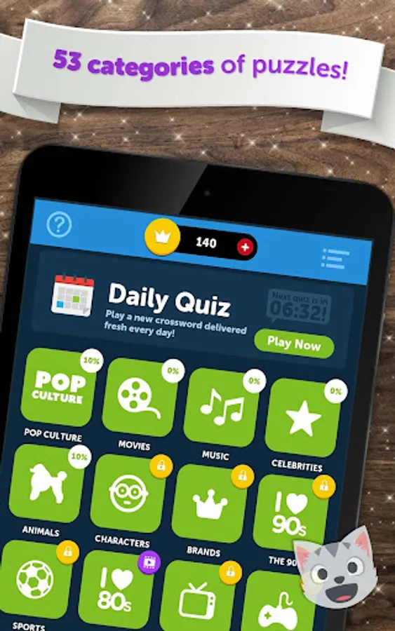 Do your best to save your coins to buy hints for more challenging crossword puzzle questions and for unlocking new categories (coins can also be purchased in-game).