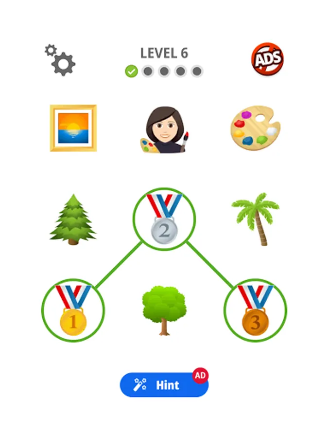 😄 Use all different types of logic and stretch your brain to connect pairs, triples, or even quadruple sets of matching emojis.