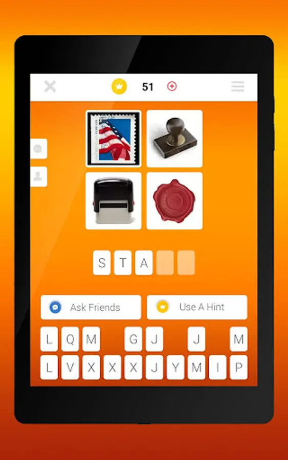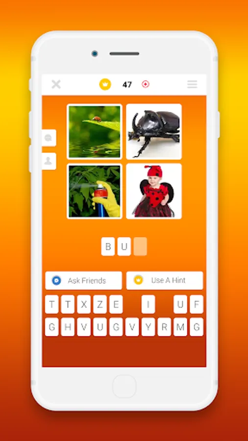 Open the game and tap "PLAY". You'll be presented with 4 random pictures. Your goal is to guess what WORD all 4 PICS have in common! Letters are provided for you to type with. Tap the letters to place them on the game board. Tapping letters again will remove letters from the game board.
