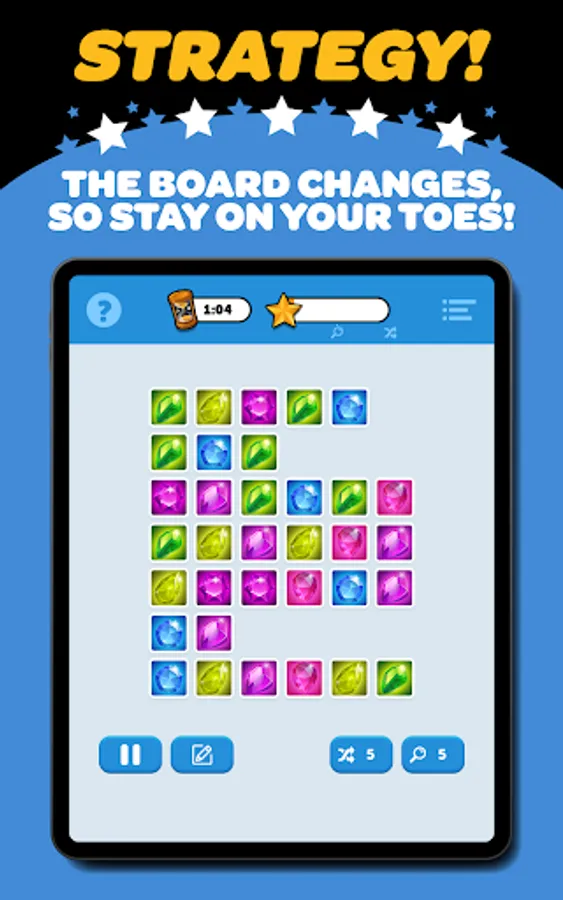🤹 - You can also shuffle the board to shake things up a bit when you run out of options! We know that sometimes things just don’t work out and finding a path between two matches is impossible. Now, you can shuffle the board and clear up some obstructions!