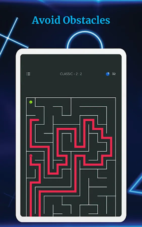 🚀 SPEED UP - Turbo charge your line speed and cruise to the end of the maze faster! Each level moves a little faster, to cover more ground. But you can carve corners even quicker with this boost!