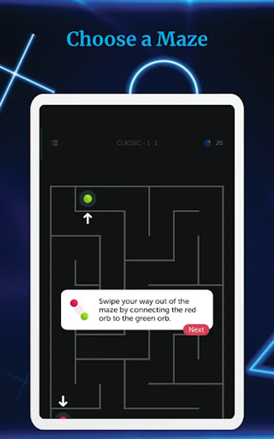 Welcome to Maze Craze, your one stop app for classic maze and labyrinth puzzles! Packed with custom created mazes, Maze Craze is a challenging collection of 6 different difficulty levels with over a thousand mazes to solve. The mazes start simple to get your feet wet, then progress to harder and harder labyrinths. (PRO TIP: You can skip ahead to harder levels once you complete a certain number of easy mazes in each level!) Each maze is designed to be played at your own pace, with no time limits or restrictions. Finish a round in one sitting or pause it and come back later, and because no wifi is necessary these puzzles are great for playing offline.