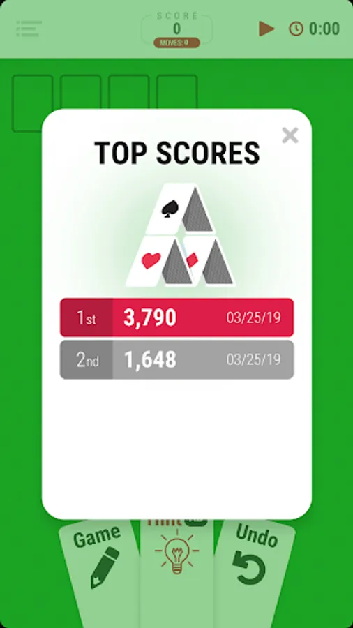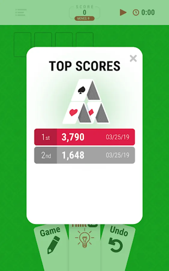 - Tracks top solitaire scores and their dates! There’s always a bar to raise, somewhere - so we track that for you.
