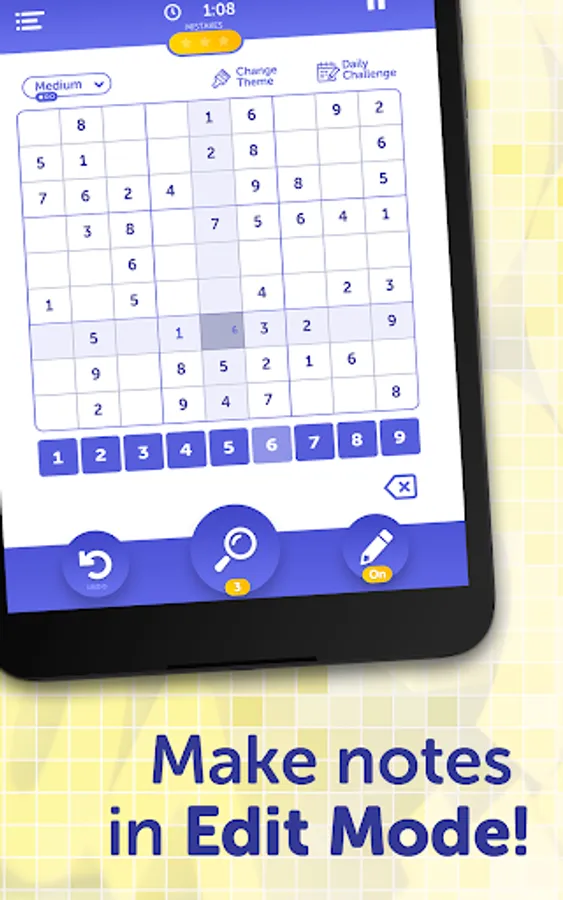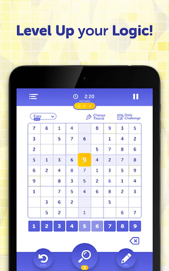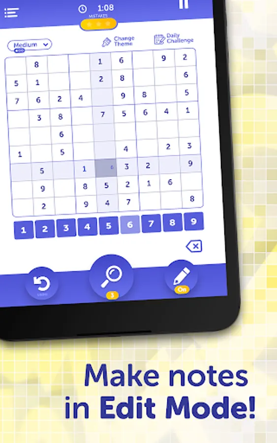 Infinite Sudoku Puzzles features an easy to read format, and brightly highlighted number blocks when selected, for an exceptional user friendly experience. This Sudoku game even offers daily challenge puzzles so you can collect trophies as you complete the challenges! The app also tracks your top time across all difficulty levels which lets you can constantly shoot for new goals. It also includes traditional features, such as a classic “scratch pad” mode, which allows you to pencil in possible answers as you work through each puzzle. Infinite Sudoku even allows you to choose from several different color schemes to match your mood, and offers hints to get you through some of the tougher puzzles as well.