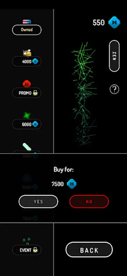 Players receive coins based on the amount of lines they managed to solve during their sessions and have the opportunity to use these coins to change the color theme of front and/or background lines.