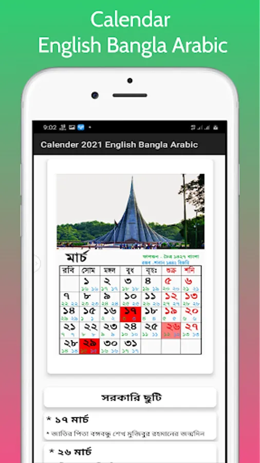 This app is an English Bengali Arabic Calendar. In this calendar, you will find together Bengali English Arabic Calendar. Bengali English Arabic Calendar for those looking for.