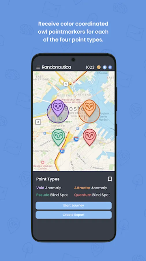 The app uses both pseudo and quantum entropy sources for randomization which provides a set of coordinates that can be opened in a map to navigate to or the user can digitally explore the coordinates. While “Blind Spots” are random points meant to be visited for exploring the unknown world around you, choosing an “Anomaly” type coordinate will run an algorithm over your radius to find the most statistically improbable distribution of random points within your radius. These are destinations where the real magic happens.
