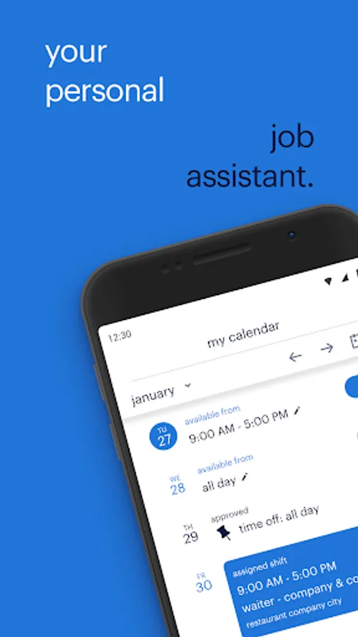 • Easily set and adjust when you are available or unavailable to work (entire days, or part of the day)