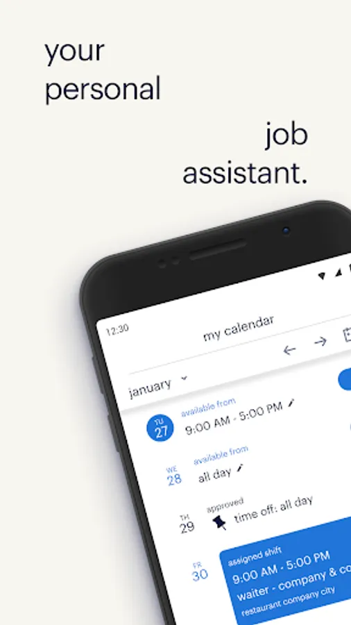 • Easily set and adjust when you are available or unavailable to work (entire days, or part of the day)