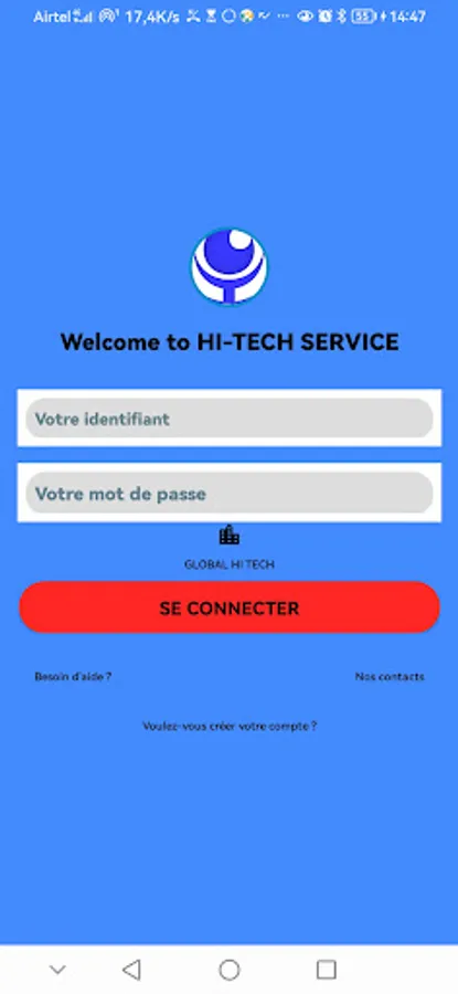 To be able to use this application, you must first have an account with HI-TECH SERVICE. to do this you can contact the Whatsapp number at 00235 68 45 96 60 or the email address ngabo.senguetallo@gmail.com.