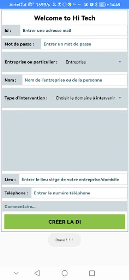 HI-TECH DI is an application that allows you to make intervention requests in a few clicks.