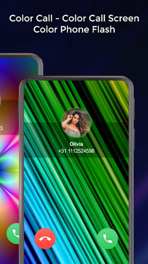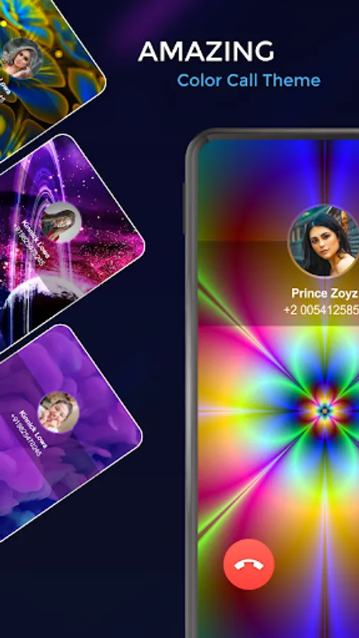 Color Call - Color Call Screen, Color Phone Flash is a wonderful screen flash for calls which helps you create your special call phone screen when you have an incoming call. Many beautiful and unique color call themes for you and you can make your phone call flash be more colorful . It provides a variety of beauty color phone call personalized themes .