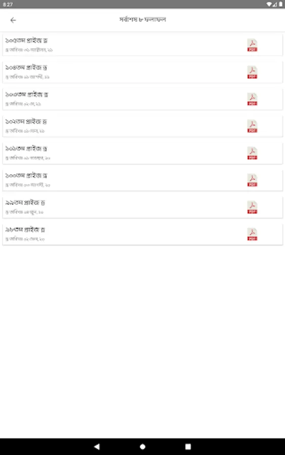 You can individually explore the last 8 active prize bond draw results from the dashboard.