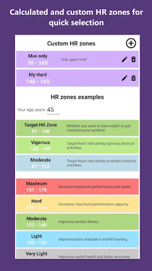 Pulse Range Monitor notifies you by beeping and(or) vibrating when you exceed your personalized upper and lower heart rate limits and thus helps keep your heart rate in the desired range.