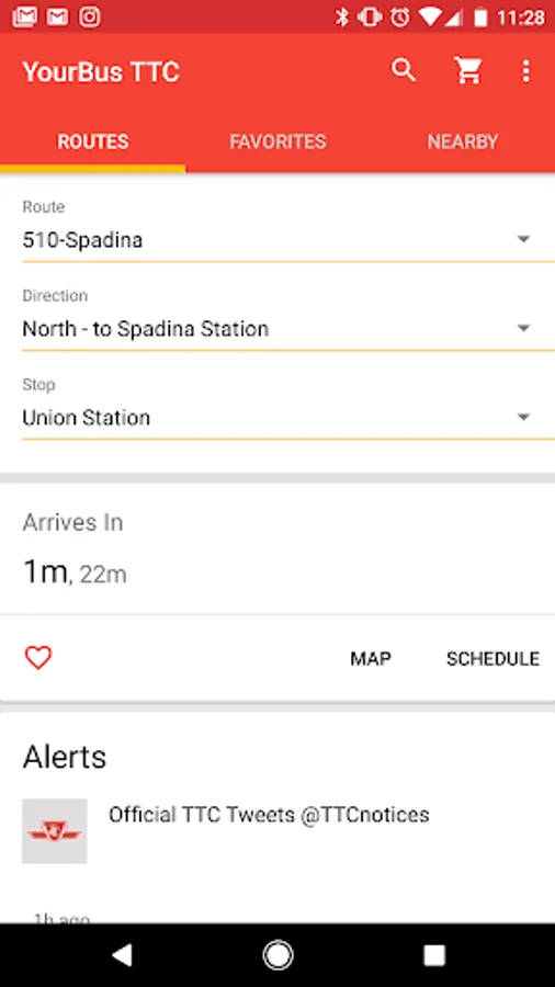 + Get arrival times from other TTC bus routes that share the same stop all in one screen.