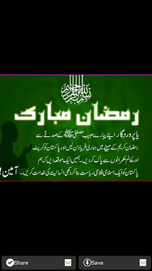 Ramadan Kareem is a month of blessing for all the muslim community around the world. This app contain ramazan kareem wishes and quotes in urdu and english . Islamic Quotes can be read through this application. you can send greetings to your friends, relatives and love ones. Happy ramazan .