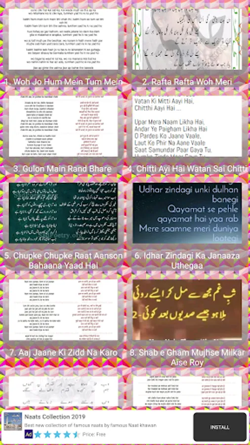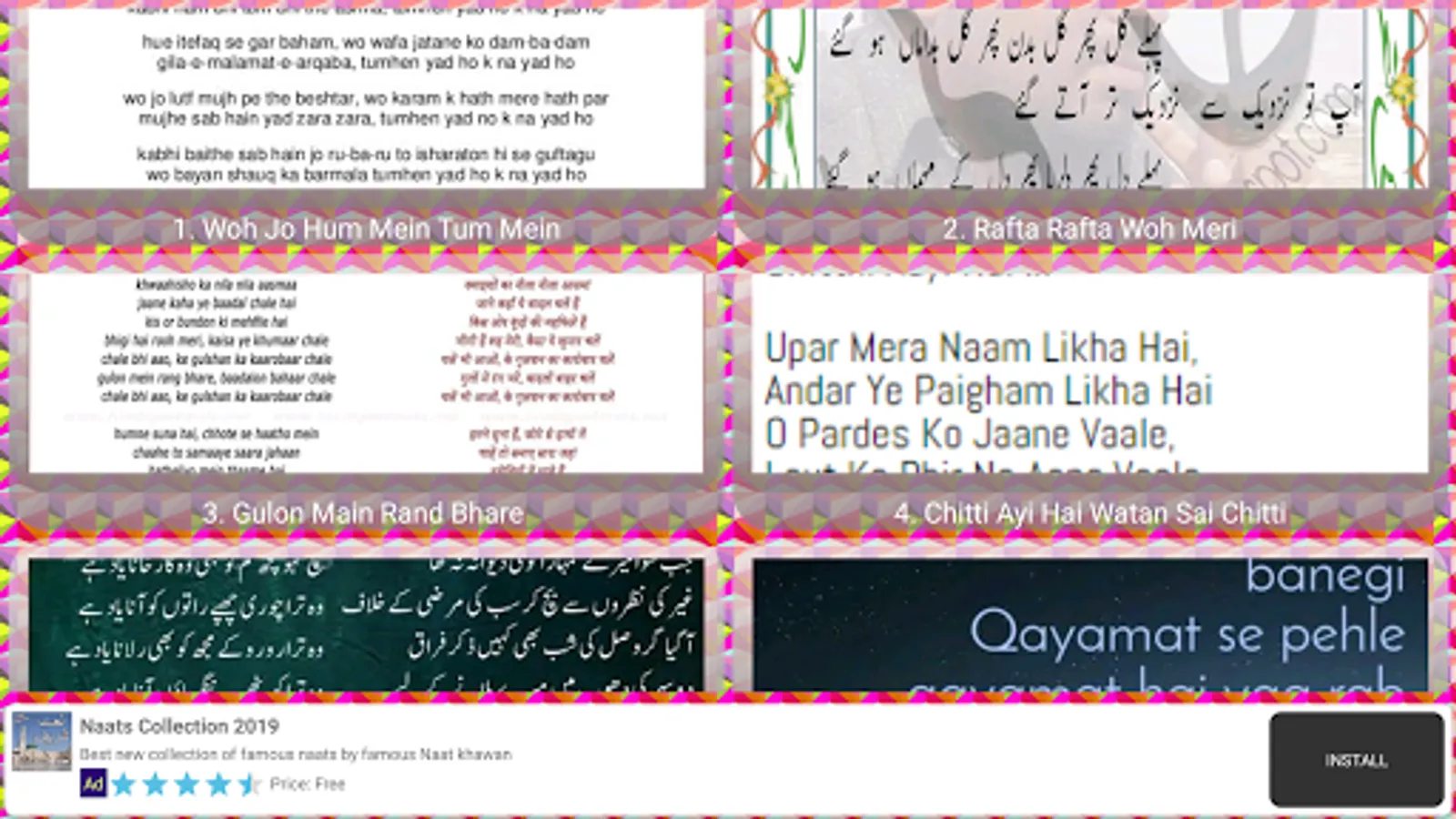 This app have collection of 100 mashoor ghazals and poetry. famous ghazals of abida perveen, perveen shakir, ghalib, mehdi hassan nusrat and rahat fateh ali han and many more. it is huge collection of sad, love and romantic poetry of famous poets.