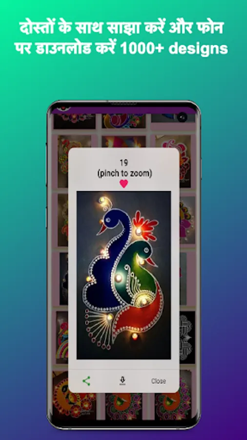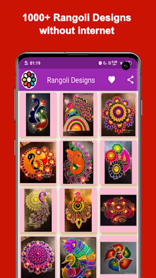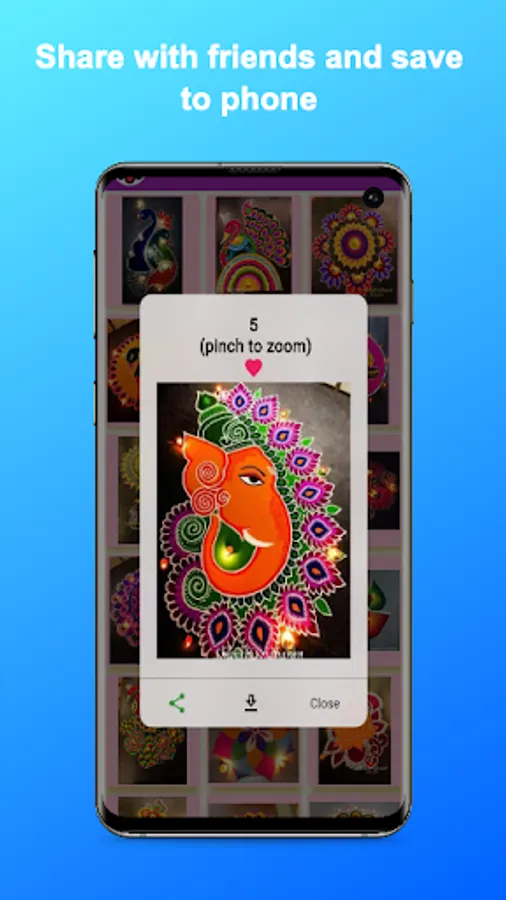 A well organised Rangoli Designs App with easy Download and share directly with Whatsapp, Facebook, Sharechat and many more.