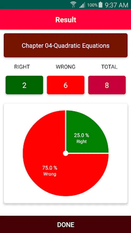 So many student has many difficulties of some chapter, So Here are check that When all Question completed after that you can check their percentage of chapter wise. It is easy to understand. There are many extra ordinary feature of this app.