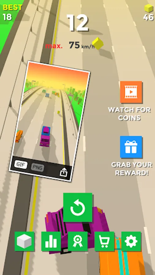 Speed of car keep accelerating try to avoid other cars for collision.Collect coins to earn points and spend on new cars really crashy fun.Real thrill seeker experience.