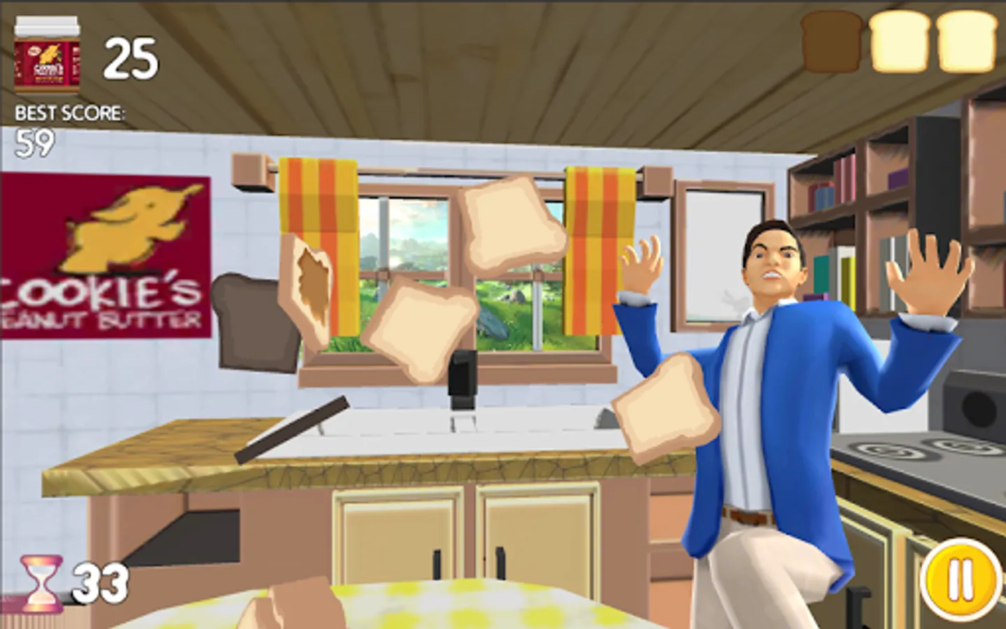 - Swipe to spread Cookie's peanut butter on incoming bread ala Fruit Ninja!