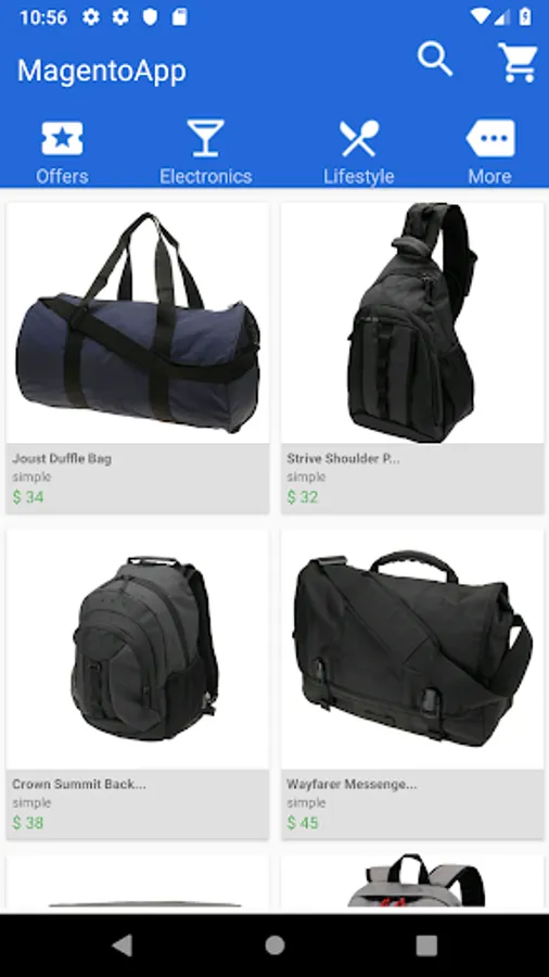 Showpiece native Android application for Magento 2 e-commerce store with the real-time synchronization of products, categories, customers, orders, etc between webshop and mobile app. From the mobile app, a customer can browse products, place order, view order details, create new account and do much more.