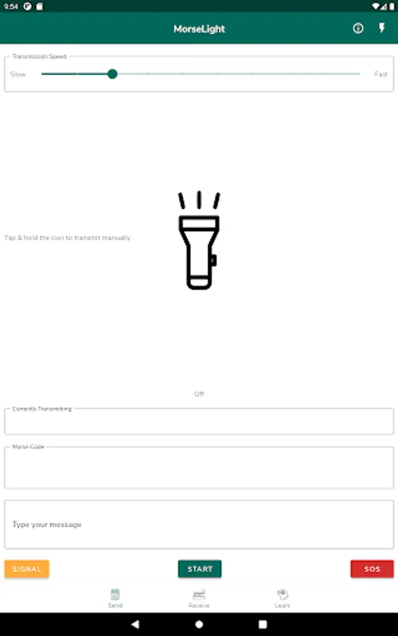 Morselight, as the name suggests, is a flashlight app with Morse code functionality. This has become an open-source project, if you are interested in working on this project drop a mail to the developer.