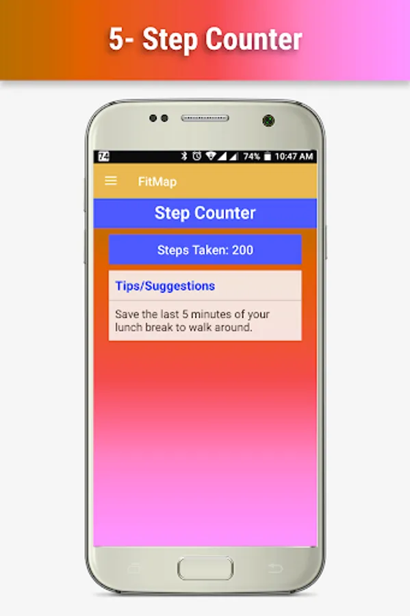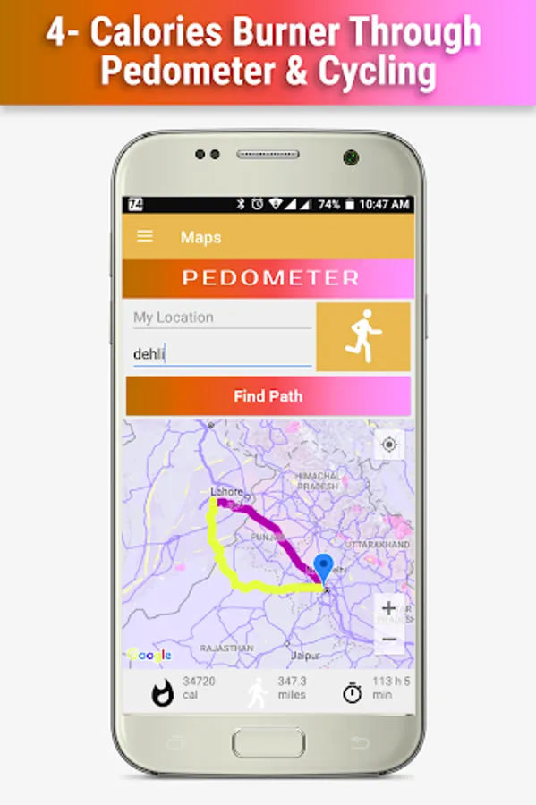 Walking Calories Section gets user data weight and mode(Running or Walking) and count number of calories burned. In Fitness Map you can check out the Taken Steps approx. Mileage and number of calories burned. You can schedule your meals and check out the history of your meals with total calories.