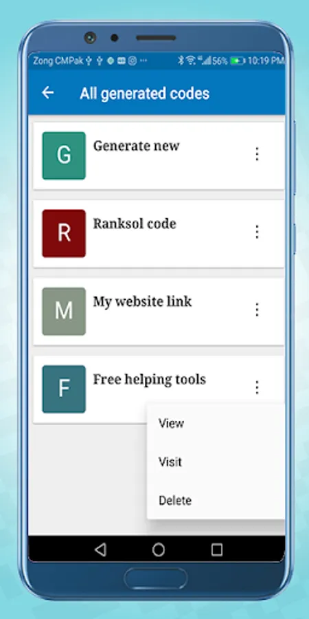 -> All the personally created Qr codes can be seen in All generated QR codes.