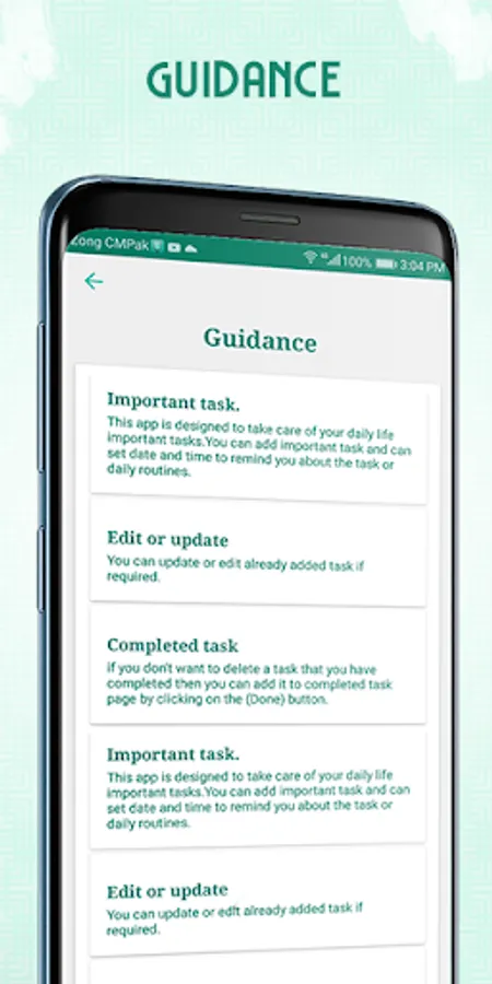 This app is designed to take care of your daily life important tasks.You can add important task and can set date and time to remind you about the task or daily routines.