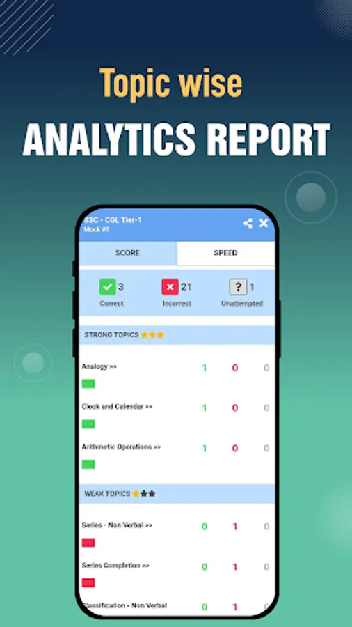 π‘ Analysis Report: Analyse your performance in mock tests with a detailed report of correct and incorrect questions, topic-wise breakdown, percentile score and check your progress to be on track.
