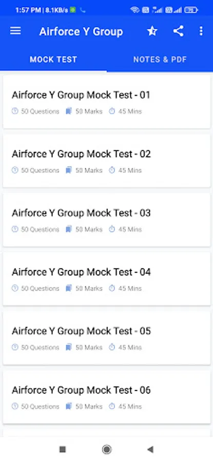 ये एप्प उन सभी विद्यार्थियों के लिए बहुत उपयोगी साबित हो सकता है जो भविष्य में आने वाले एयरफोर्स y ग्रुप एग्जाम की तैयारी कर रहे है. इस एप्प में आप फ्री ऑनलाइन मोक टेस्ट दे सकते है जिससे आपके एग्जाम की तैयारी और बेहतर हो जाएगी.