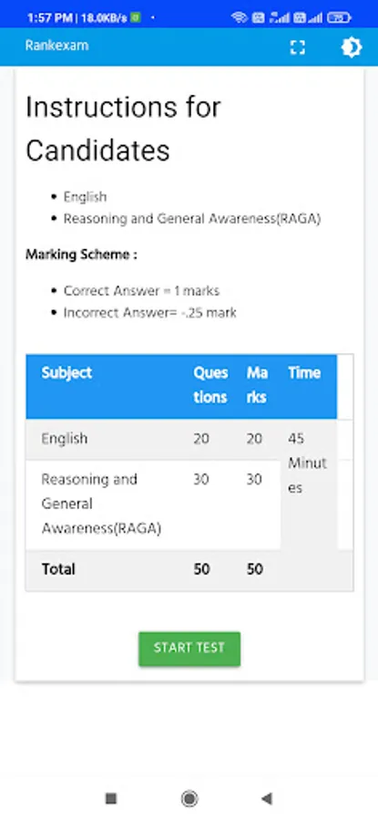 In this app you can attempt free online mock test with timer and after finish the test app will show your test result in-depth details so you can analyze your result and improve it better.