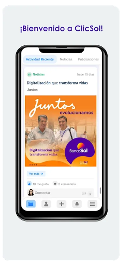 Welcome to ClicSol! the place where the collaborators of BancoSol S.A. we can constantly interact by viewing news, posting in groups, reacting, congratulating birthday boys, remembering anniversaries and enjoying content such as images and videos. In addition, you will have access to the Learning Center, organization chart and directory, among others.
