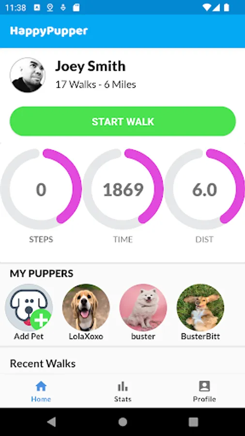 Ready to start walking or running with your Dog? Lace up your shoes and start tracking your steps, distance, time, speed and other stats with the Happy Pupper Dog Walking app.