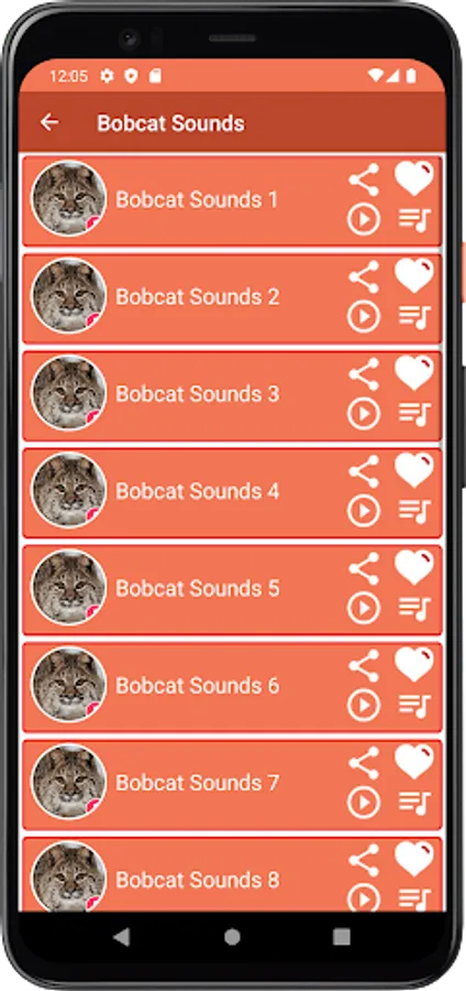 This application containing the best collection of bobcat sounds for android devices. Sounds have been selected very carefully to be a good and fun user experience, we hope you will enjoy using the app and listening to bobcat sounds.