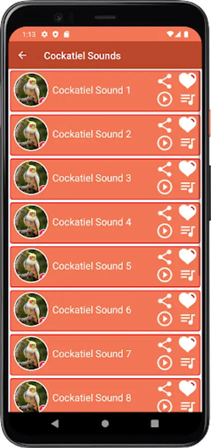 This application containing the best collection of cockatiel sounds for android devices. Sounds have been selected very carefully to be a good and fun user experience, we hope you will enjoy using the app and listening to cockatiel sounds.