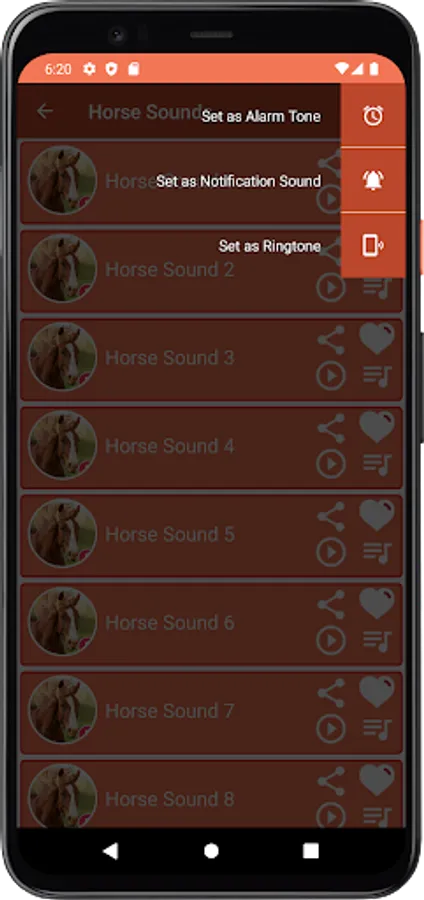 This application containing the best collection of horse sounds for android devices. Sounds have been selected very carefully to be a good and fun user experience, we hope you will enjoy using the app and listening to horse sounds.
