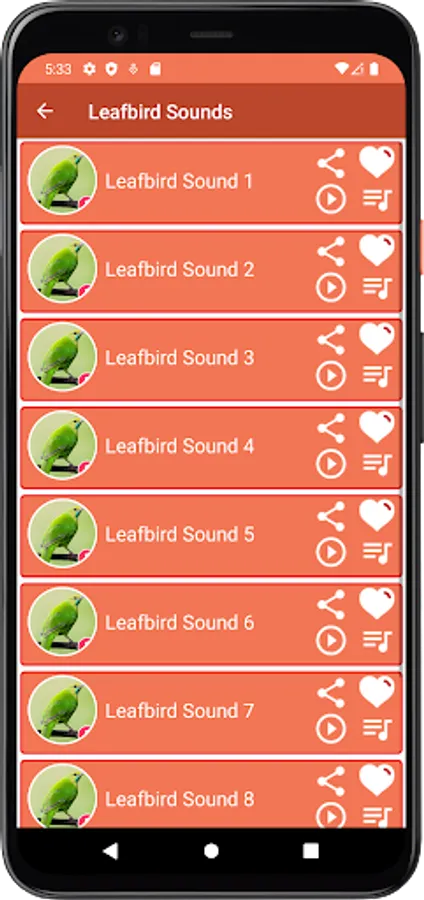 this application containing the best collection of leafbird sounds for android devices. sounds have been selected very carefully to be a good and fun user experience, we hope you will enjoy using the app and listening to leafbird sounds.