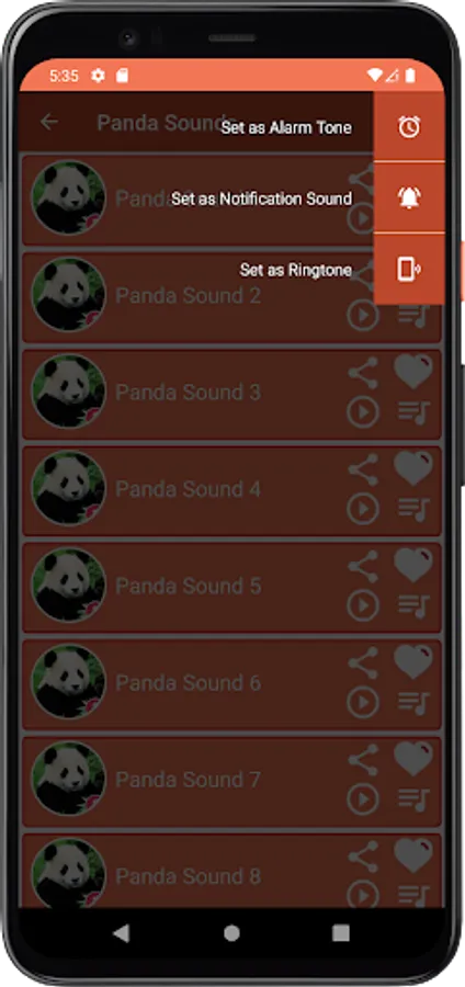 This application containing the best collection of Panda Sounds for android devices. sounds have been selected very carefully to be a good and fun user experience, we hope you will enjoy using the app and listening to Panda Sounds