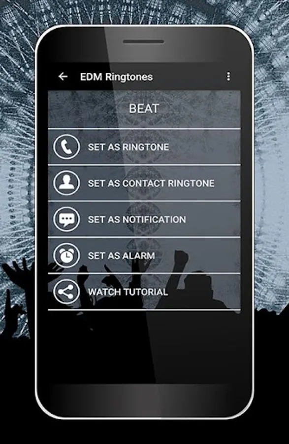 EDM ringtones app is compatible with android devices. Use it on Samsung Galaxy S7edge, Samsung Galaxy S9, HTC One, Sony Xperia Z3 Compact, LG Optimus, ZTE Blade, Lenovo, Huawei Ascend and many more. If you have any problem, just check out tutorial whose link is within the app to help you set custom ringtone, SMS, alarm and calendar sound for you. It is party time!