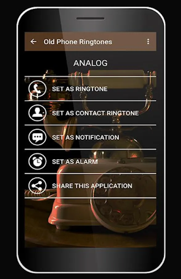 Classic Old Phone Ringtones application is tested and compatible with android devices. Use it on your phone or tablet for the best customer experience. Set classic ringtones and vintage sound effects as a ringtone, notification, alarm or calendar. Have fun with the best collection of authentic old phone sounds!