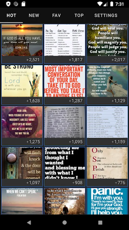The quotes is sorted into hot and new category to help you find the best quotes to read. You can also find your upvoted quotes at "FAV" category.